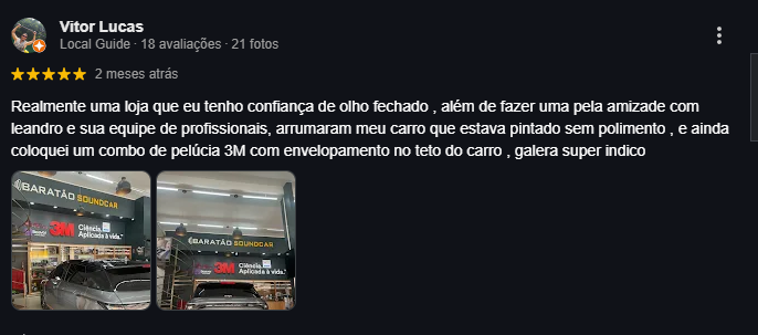 A Baratão Sound Car é referência há mais de 25 anos na aplicação de películas automotivas, PPF, som e acessórios. Somos a única loja autorizada 3M em Brasília com atendimento especializado, instalação rápida e materiais certificados.